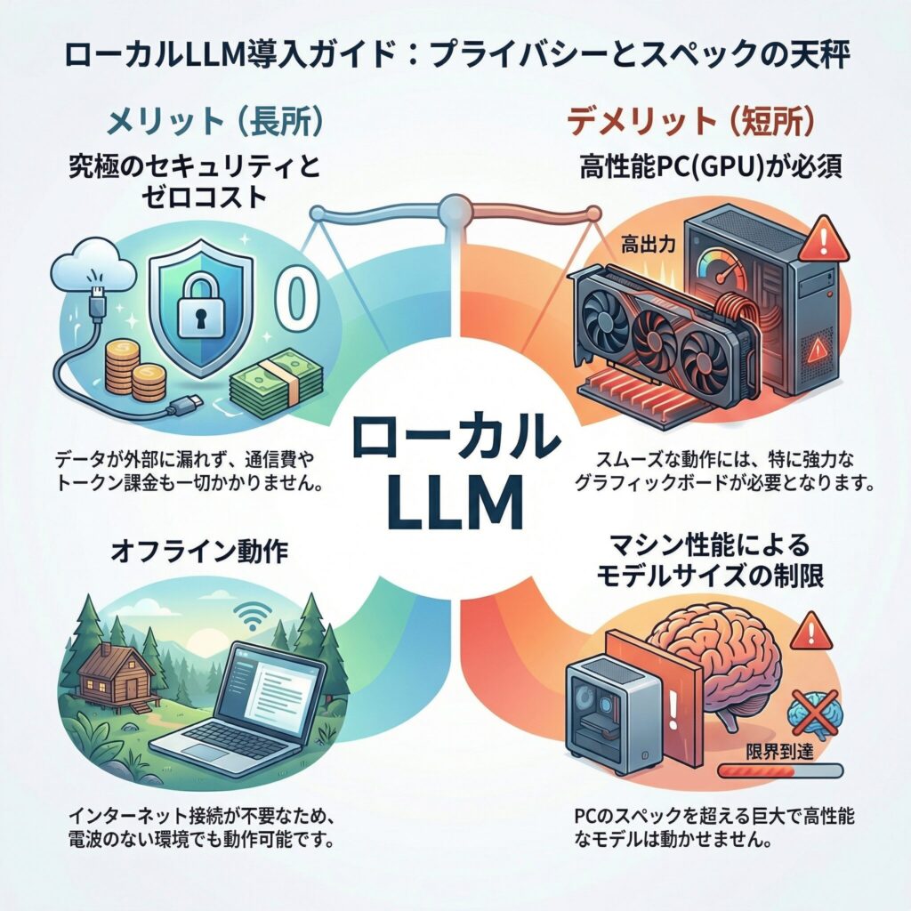 「外部の巨大なサーバーに繋がず、自分のPCや社内サーバーの『手元のマシン』だけで動かすAI」